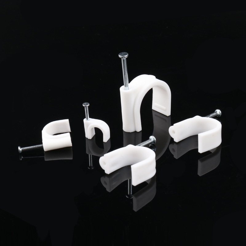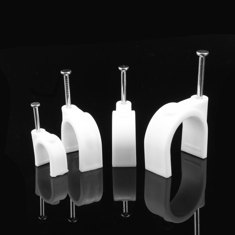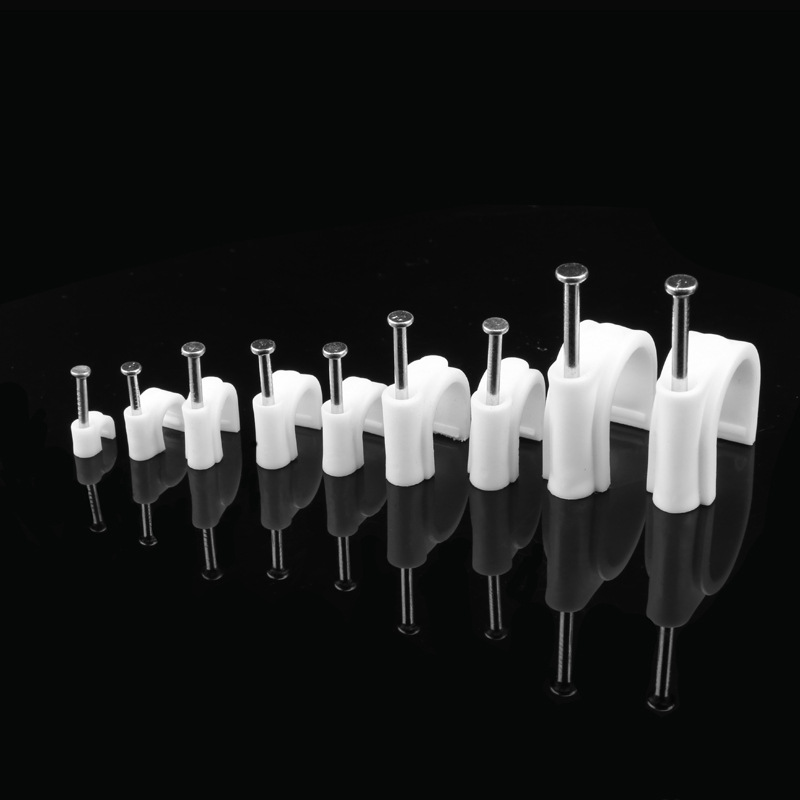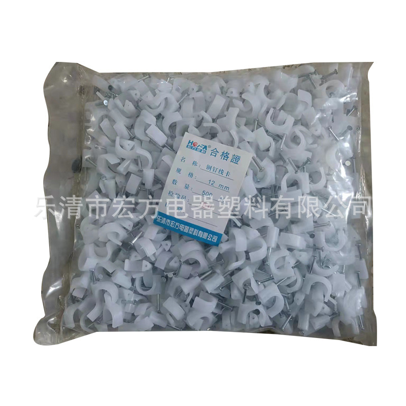 量大從優(yōu)PE白色料注射成型插釘式線扣鋼釘線扣方形扁形鋼釘線卡