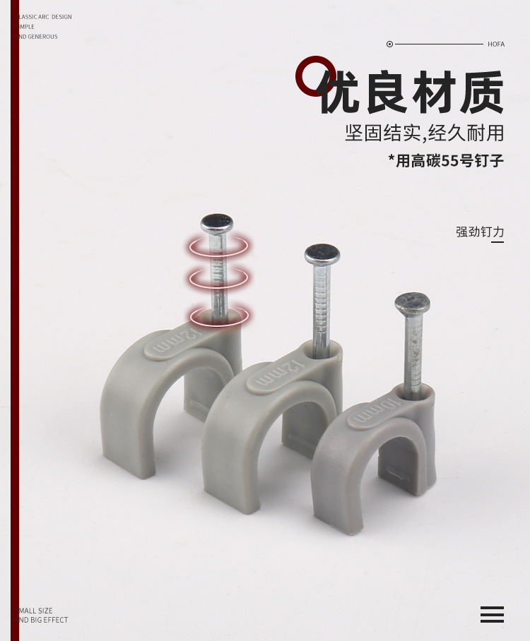 沖量款 塑料電纜網(wǎng)線線卡 鋼釘線卡圓型灰色 墻釘線釘電線卡扣