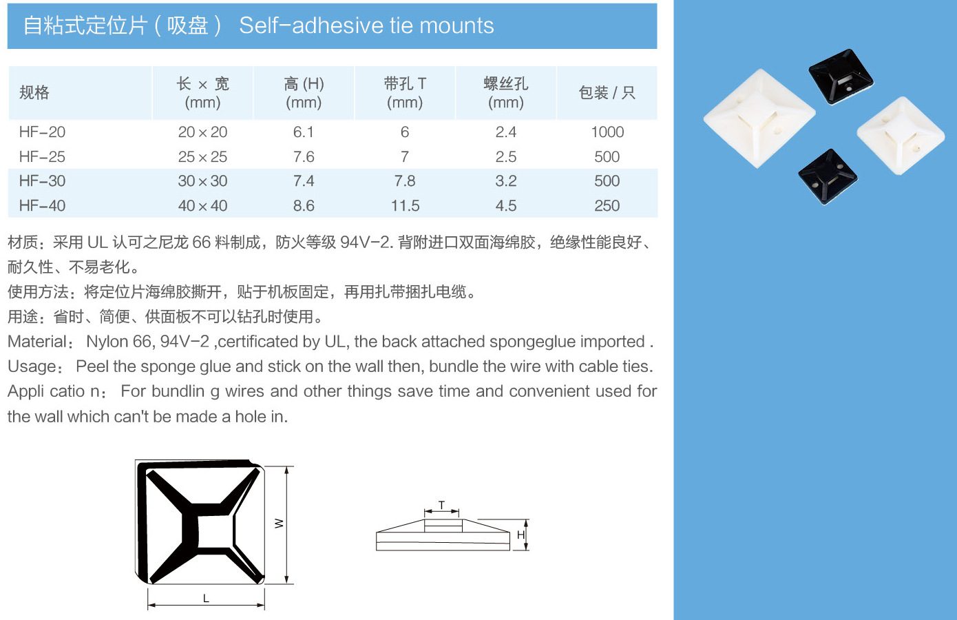 批發(fā)扎帶固定座 白色黑色固定座 方底線卡電子元器件 扎帶線卡