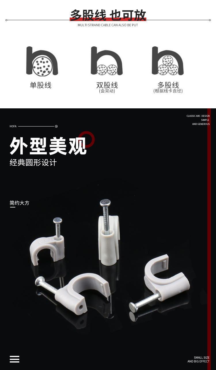 量大從優(yōu)PE白色料注射成型插釘式線扣鋼釘線扣方形扁形鋼釘線卡