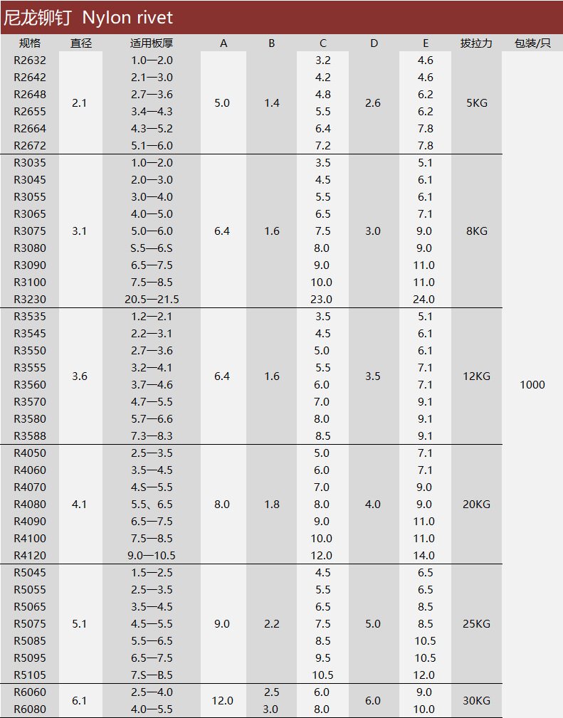 上一篇:白色尼龍鉚釘高品質(zhì) 緊固件連接件R系列 尼龍緊固件圓頭鉚釘